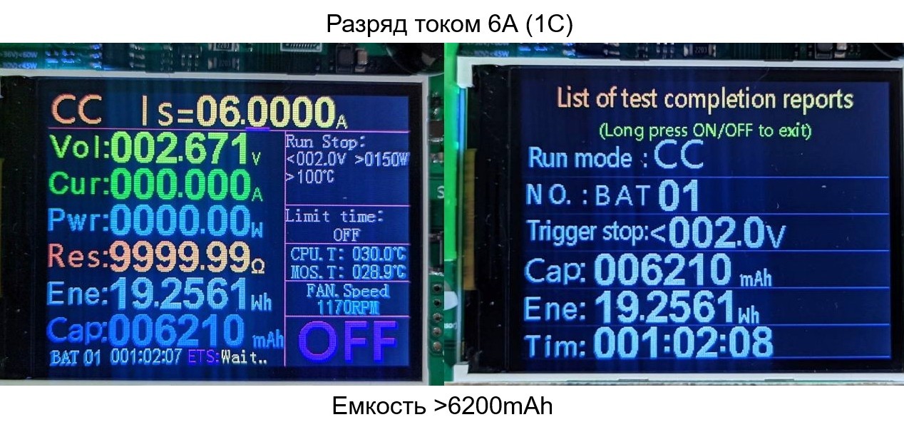 - Ток заряда: 1C (6A)